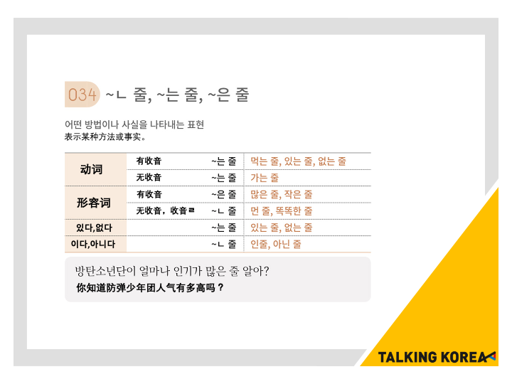 • 작성일: 2021-09-20 • 조회: 3,417TOPIK必备中级语法,由TalkingKorea精心整理提供!