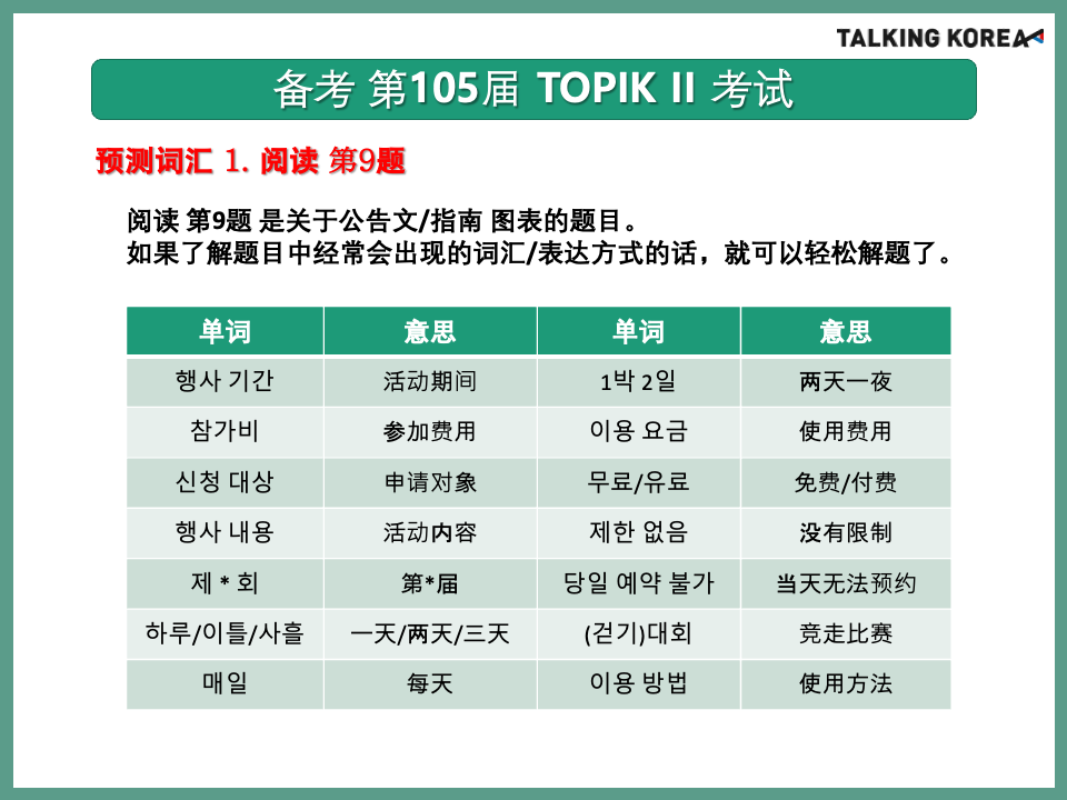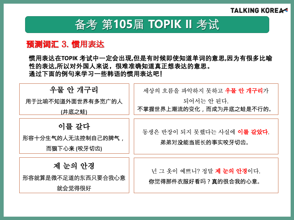 105届 TOPIK考试 必备词汇及表达
