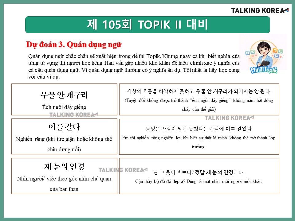 #TOPIK105 #LuyệnThiTOPIK #TalkingKorea #TừVựngTOPIK #QuánDụngNgữHàn