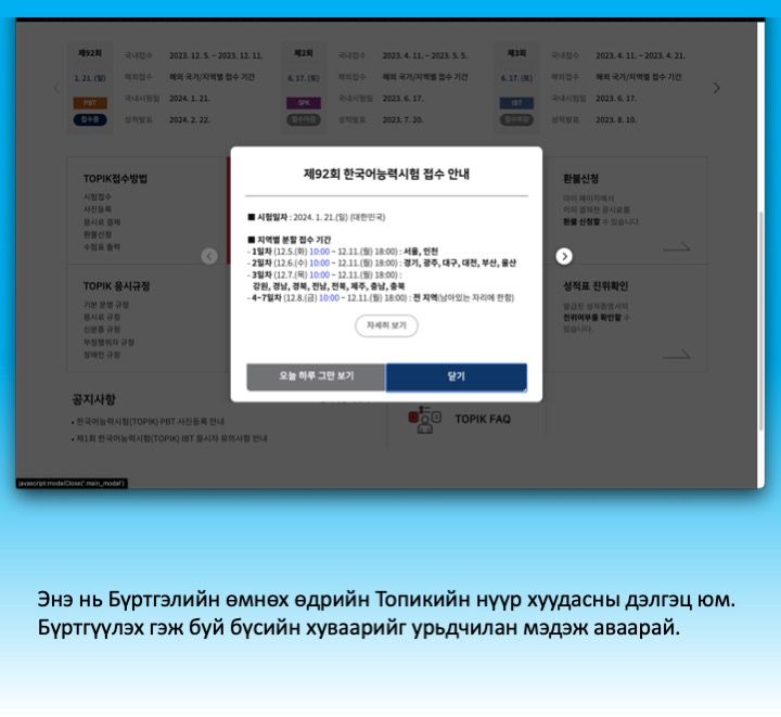 | 1 | Шалгалтад бүртгүүлэх арга - TOPIK 시험 접수 방법- 2023-10-08 |